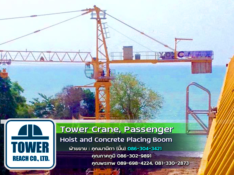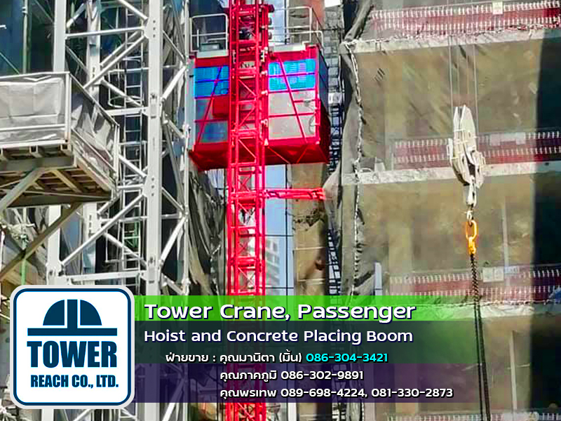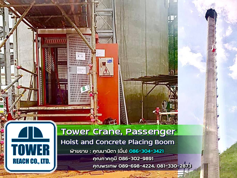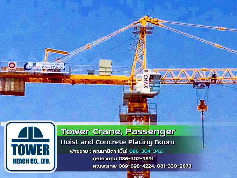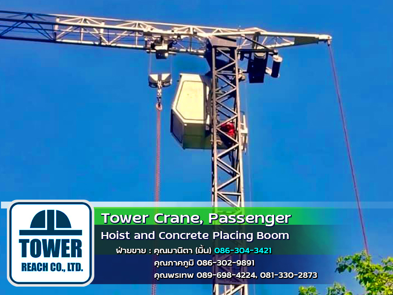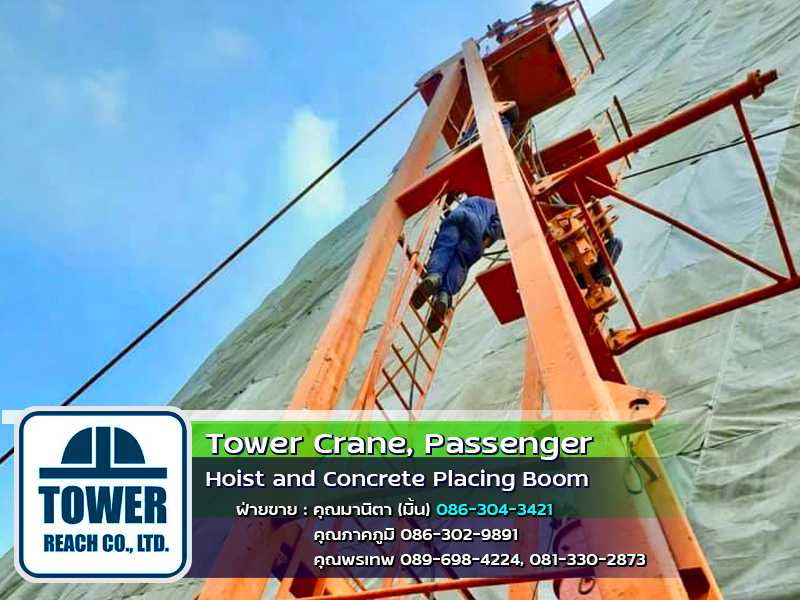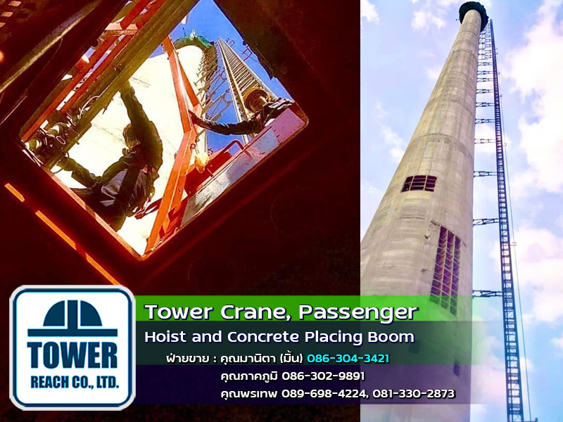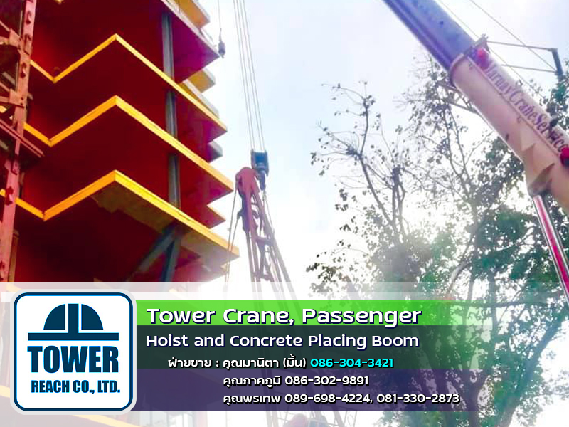 บริษัท ทาวเวอร์รีช จำกัด ผู้นำเข้า ทาวเวอร์เครน เดอริคเครน ลิฟต์โดยสารและขนส่งวัสดุ Concrete Placing Boom (บูมลำเลียงคอนกรีตผสมเสร็จ) สินค้าใหม่และมือสอง พร้อมทีมช่างมากประสบการณ์ ครบวงจร และบริการหลังการขาย