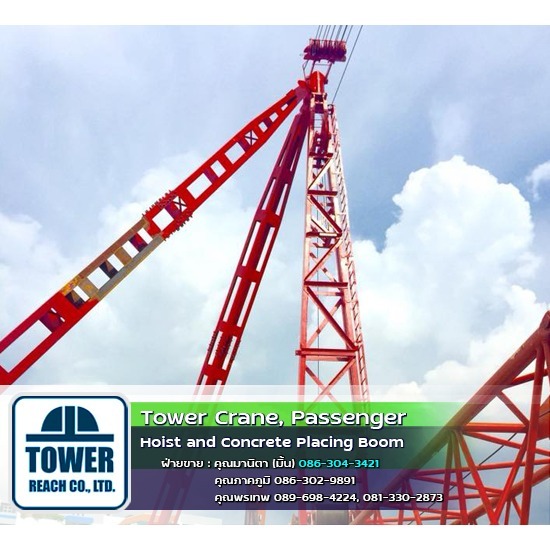 บริษัทให้เช่าทาวเวอร์เครน เดอรริคเครน พร้อมติดตั้ง เช่าทาวเวอร์เครนรองรับงานก่อสร้างอาคารสูงหรือก่อสร้างสิ่งปลูกสร้างสูง-ขนาดใหญ่ คอนโดมิเนียม โรงแรม โรงพยาบาล อาคารสูงสำนักงาน อาคารเรียนมหาวิทยาลัย ก่อสร้างอาคารจอดรถ ห้างสรรพสินค้าและศูนย์การค้า งานก่อสร้างโรงไฟฟ้า หอระบายควันโรงกลั่นน้ำมัน งานหล่อเสาหล่อคานสร้างสะพานข้ามคลองงานรื้อถอนอาคารสูง บริษัท ทาวเวอร์รีช จำกัด ในเครือ BTS Group จำหน่ายและให้เช่าทาวเวอร์เครนบูมราบ Tower crane และทาวเวอร์เครนบูมกระดก Luffing jib tower crane, Derrick cranes เพื่อใช้ในงานก่อสร้างอาคารสูง พร้อมทีมงานติดตั้งเพิ่มเพิ่มความสูงทาวเวอร์เครนอละรื้อถอนทาวเวอร์เครน จำหน่าย-ให้เช่าและบริการติดตั้งลิฟต์โดยสารงานก่อสร้าง ให้เช่าทาวเวอร์เครนในโครงการรื้อถอนคอนโด Abstract Condo พหลโยธินปาร์ค ให้เช่าลิฟท์ก่อสร้าง ในโครงการรื้อถอนอาคาร Abstract Condo พหลโยธินปาร์ค สอบถามข้อมูลเพิ่มเติม ขอใบเสนอราคา โทร. 02-713-1130 ติดต่อฝ่ายการตลาด คุณมานิตา (มิ้น) 086-304-3421 คุณภาคภูมิ 086-302-9891 คุณพรเทพ 089-698-4224, 081-330-2873 ให้เช่าเครนบูมกระดกสำหรับงานรื้อถอนอาคาร เช่าเครนบูมกระดกสำหรับใช้รื้อถอนทาวเวอร์เครนบูมราบ และบริการงานเพิ่มความสูงและลดความสูงของทาวเวอร์เครน : ให้เช่าทาวเวอร์เครน ระยอง บริษัท ทาวเวอร์รีช จำกัด เลขทะเบียนนิติบุคคล 0105558071761 มีความพร้อมด้านเครื่องจักร อุปกรณ์ บุคลากรและการบริหารจัดการที่เป็นมืออาชีพ โปรดมอบความไว้วางใจให้เราเป็นส่วนหนึ่งในการขับเคลื่อนงานก่อสร้างในโครงการสำคัญของท่านให้บรรลุเป้าหมายในเวลาที่กำหนด บนพื้นฐานของความปลอดภัย และมีส่วนร่วมในการควบคุมต้นทุนงานก่อสร้างให้สำเร็จลุล่วงไปด้วยดี ที่ตั้งโรงงานซ่อมบำรุงทาวเวอร์เครน BTS Group และส่วนขยายออฟฟิตงานบริการ เลขที่ 64/1 หมู่ 4 ซอยวัดอู่ตะเภา ถนนฉลองกรุง แขวงลำผักชี เขตหนองจอก กรุงเทพมหานคร 10530 GPS. 13.7845045,100.8205435 จำหน่ายและให้เช่าทาวเวอร์เครนบูมราบ (Tower crane) และทาวเวอร์เครนบูมกระดก (Luffing jib tower crane, Derrick cranes) ในเขตพื้นที่ก่อสร้างอาคารสูง และแหล่งอุตสาหกรรม กรุงเทพมหานคร,สมุทรปราการ, ปทุมธานี, นนทบุรี, ชลบุรี, ระยอง, อยุธยา, สระบุรี, นครราชสีมา, ปราจีนบุรี