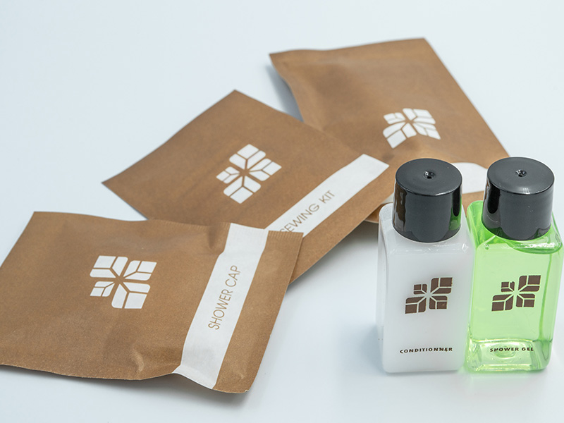 ผู้ผลิตของใช้ในห้องพักโรงแรม-รีสอร์ท ชุดคอลเลคชั่นสำหรับโรงแรม ดีไซน์พิเศษ อาทิ สบู่ก้อนใส่กล่องกระดาษ สบู่เหลว-แชมพู-ครีมนวด-โลชั่น-แป้งโรยตัว-น้ำยาล้างจาน-เจลล้างมือ บรรจุขวดพลาสติกรูปทรงต่างๆ ชุด คอตตอนบัด-หวี-แปรงสีฟัน-ยาสีฟัน-หมวกคลุมผม บรรจุกล่องกระดาษพิมพ์แบรนด์ลูกค้า บรรจุซองกระดาษ บรรจุซองพลาสติก พิมพ์สกรีนโลโก้รูปแบบต่างๆ ส่งมอบความรู้สึกสะอาดมีอนามัย ที่โกนหนวด ถุงครอบแก้ว ถุงผ้าอนามัย ถุงซักรีด รองเท้าใส่ในห้อง และของพรีเมี่ยมต่างๆ พิมพ์สกรีนโลโก้โรงแรม-รีสอร์ท และ โรงพยาบาล