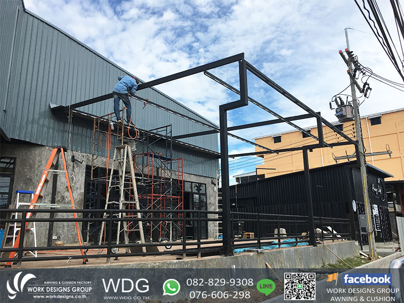 *** เป็นงานหลังคาพับเก็บได้ เหมาะสำหรับพื้นที่ขนาดใหญ่ สามารถเปิด-ปิด รับแสง ระบายอากาศ และป้องกันฝน ได้รับความนิยมมากสำหรับร้านอาหาร บาร์ และสวนหย่อม