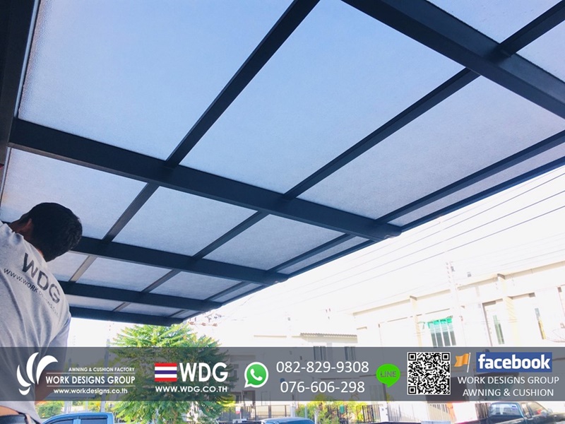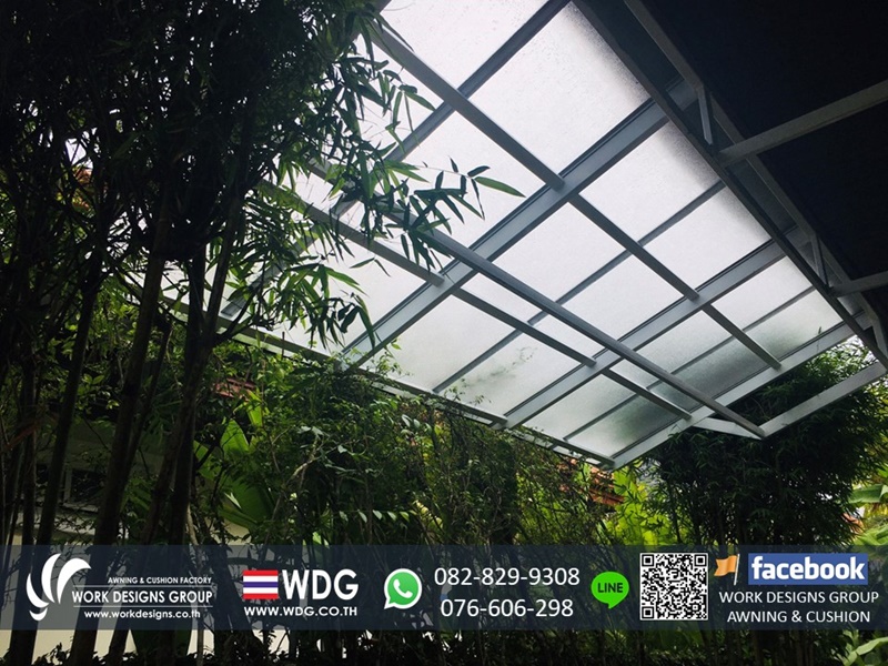 กันสาดติดผนัง มีรูปทรงให้เลือกหลากหลายแบบ ผ้าใบระบายอากาศได้ดีไม่ร้อน ฝนตกไม่เสียงดัง