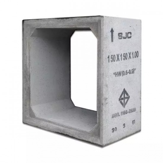 ท่อคอนกรีตเสริมเหล็กสี่เหลี่ยม มอก. ของ SJC ชนิดใต้ทางเท้า และ ชนิดใต้ผิวจราจรสำหรับงานระบายน้ำที่ต้องการระบายน้ำในปริมาณมากๆ เช่น งานระบายน้ำตัดผ่านถนน คู คลอง ขนาด 120x120 ซม. และขนาด 150x150 ซม.