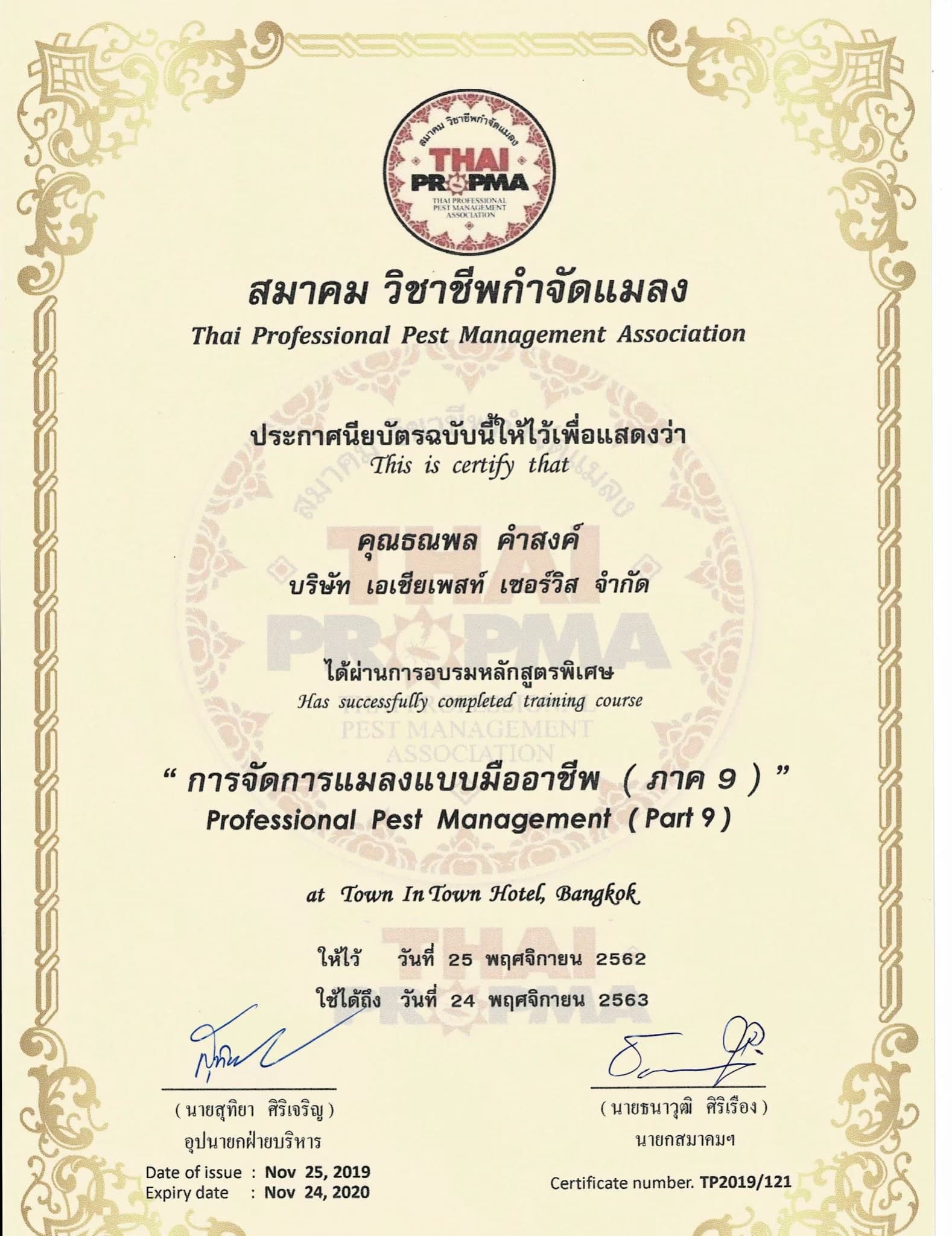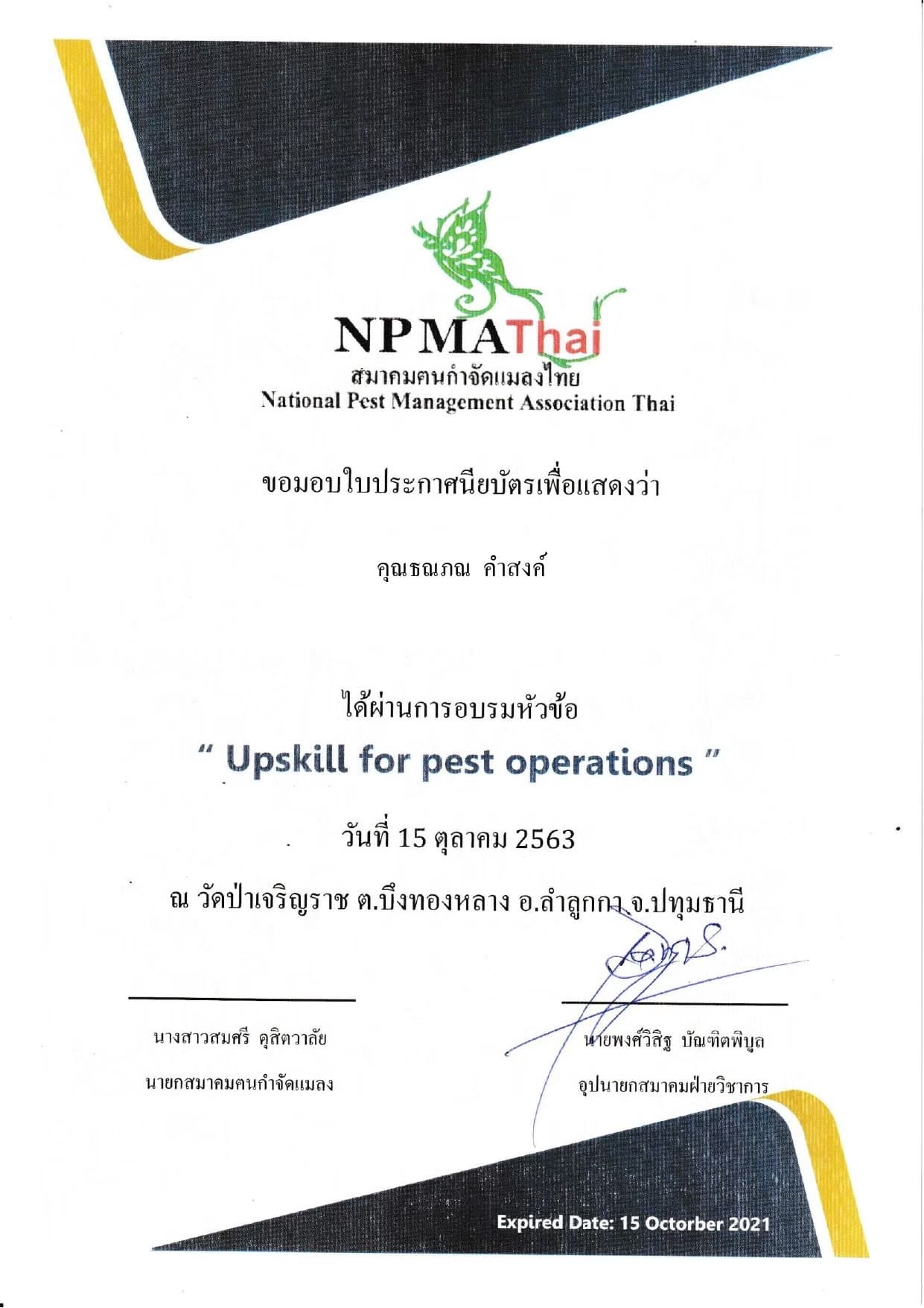 - รู้จริงแก้ปัญหาได้ เพราะทีมผู้บริหารและทีมงานผู้ปฏิบัติงานภาคสนาม ผ่านการอบรมความรู้ด้านการกำจัดปลวก กำจัดแมลง กำจัดสัตว์ฟันแทะ จาก ที่ปรึกษาและนักวิชาการผู้ทรงคุณวุฒิ ด้านการควบคุมการใช้วัตถุอันตรายเพือการใช้รับจ้างกําจัดแมลงพาหะนำโรค กำจัดหนู ในบ้านเรือนทางสาธารณสุข มีความชำนาญรู้จริงในการแก้ปัญหาเรื่องปลวก แก้ปัญหาเรื่องแมลงพาหะนำโรคและแมลงรำคาญอย่างเห็นผลจบปัญหาได้จริง